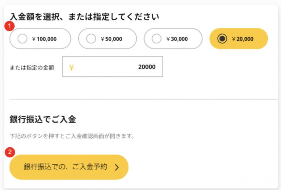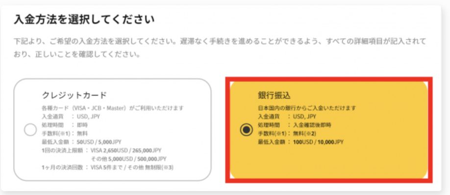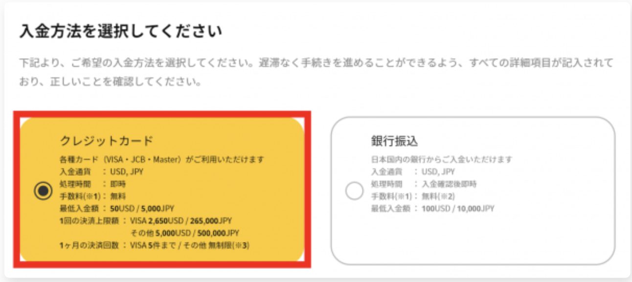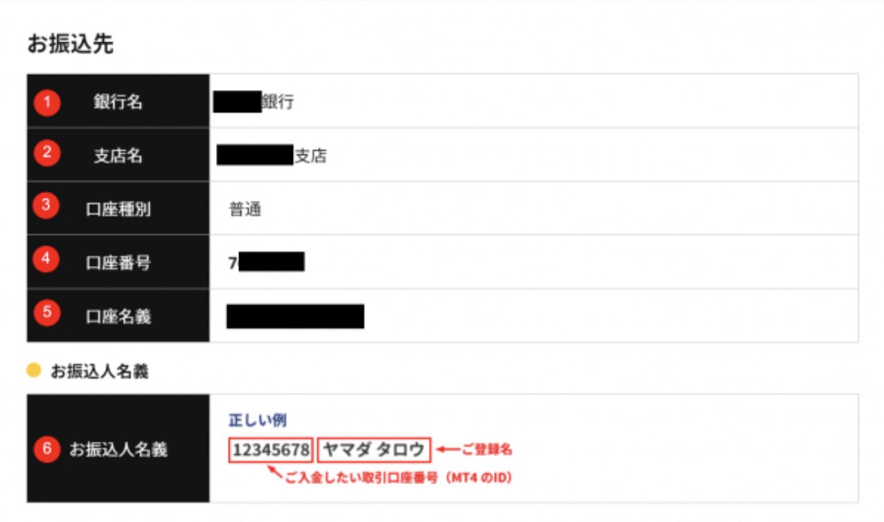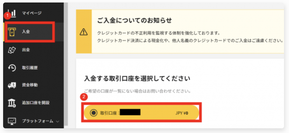 IS6FXでEA(自動売買)を稼働するまでの最後のステップは、Step1で開設した口座への入金になります。 EAの設置が完了したら、あとは入金するだけです。 IS6FXでは、下記の通り様々な支払い方法に対応していますが、クレジットカードと国内銀行送金(振込)がもっともオーソドックスと思われますので、この2つの手順について解説していきます。 ※入金方法に関する最新の情報はこちらをご参照ください→https://is6.com/ja/tradingaccount/payment まず、IS6FXのマイページにログインします。 ログイン後、下記画面左部の①[入金]をクリックし、②で入金する取引口座を選択します。(口座が1つしかない場合はあらかじめその口座が選択されています) 続いて、入金方法の指定メニューで「銀行振込」を選択します。 次に、下記画面の①で入金額を設定し、②の[銀行振込での入金予約]をクリックします。 その後、振込先の情報が表示されますので、振込元の銀行から振込手続きを行ってください。(振込先口座は随時変更されることがありますので毎回確認するようにしましょう) 振込の際は、必ず振込名義人欄に「MT4ID+カタカナ氏名」の形式で記入してください。(Step1で開設したIS6FX口座と同一名義にすること) 入金してから1~2時間後に反映されますので、口座の残高が増えていることを確認しましょう。 振込名義人の情報に誤りがあると入金の反映までに時間がかかる場合がありますが、もし誤って記入してしまってもIS6FXのカスタマーサポートに連絡すれば対応してもらえますのでご安心ください。 まず、IS6FXのマイページにログインします。 ログイン後、下記画面左部の①[入金]をクリックし、②で入金する取引口座を選択します。(口座が1つしかない場合はあらかじめその口座が選択されています) 続いて、入金方法の指定メニューで「クレジットカード」を選択、クレジットカード情報を入力します(初回利用の場合)。 次に、下記画面の①で入金額を設定し、②の[入金する]をクリックします。 これによりクレジットカードでの入金が完了し、反映されます。 以上で完了です! 口座の入金が完了したらEAが稼働し、エントリーや決済を自動的に行っていきます。